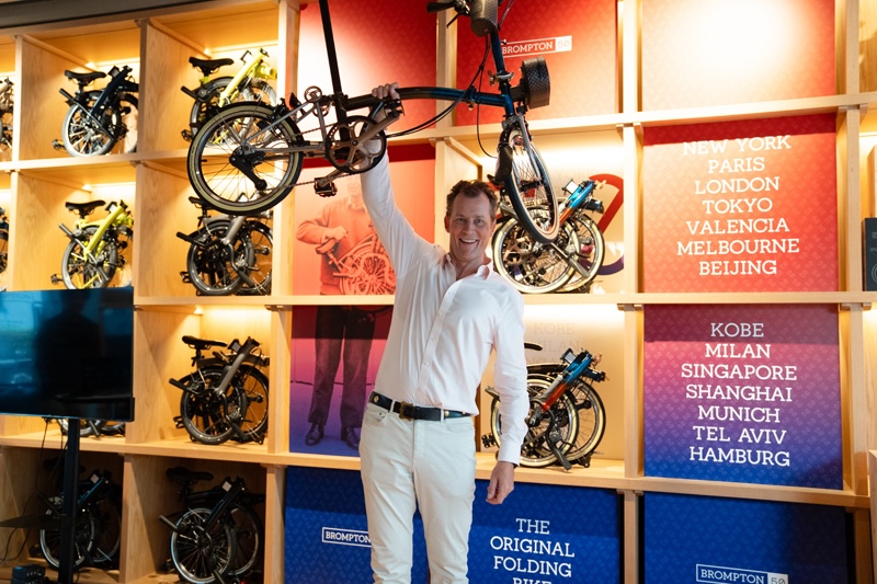 ブロンプトン1975エディションを掲げるウィル・バトラー=アダムスCEO