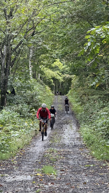 コースは走力別に3タイプ。ヒグマ130km、エゾシカ100km、シマリス45kmと地元の野生動物にちなんだネーミングが採用された。中でも最長ヒグマコースは獲得標高約2000m、未舗装路率5割と中々にチャレンジング……だったのだが、雨の影響でコースが短縮。エゾシカコースに統合される形で、合計約300名が100km/獲得標高1700mのコースへと挑んだ。筆者ナカタニもこのエゾシカコースを実走した。ヒグマは来年に持ち越しとしたい。