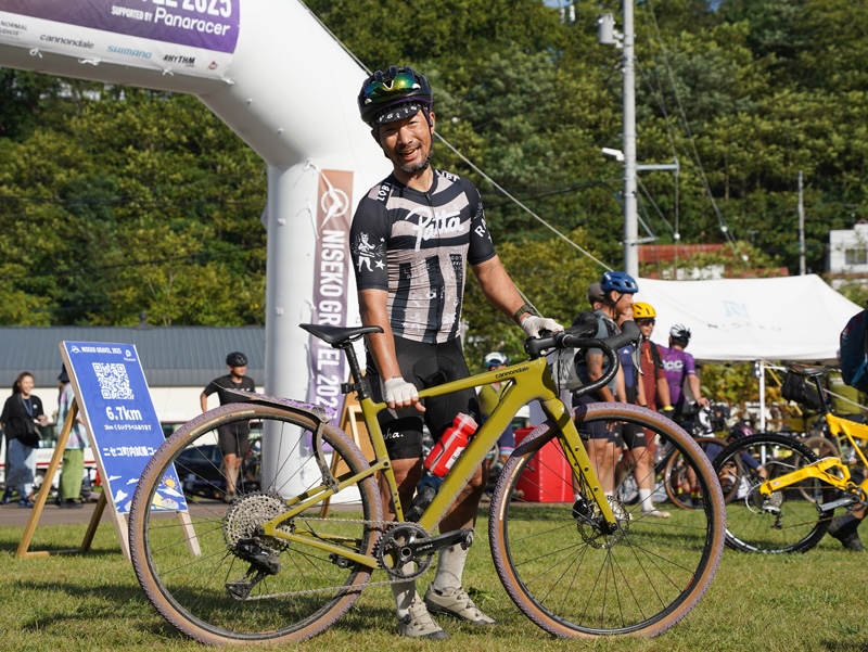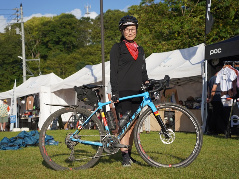宮城からご参加のKAZUYOさん。2週間前のグラベルクラシックやくらいも参加し、すっかりオフロードにハマり中。RCC(ラファサイクリングクラブ)の仲間を連れて100kmコースを走り切った。「ニセコは2回目です。新しいコースに変わって、去年とはまた違う景色を楽しめました。オフロードは最初怖いんですが、徐々に慣れて楽しくなってくるのがいいですよね!」とグラベル遊びの魅力を表現してくれた。