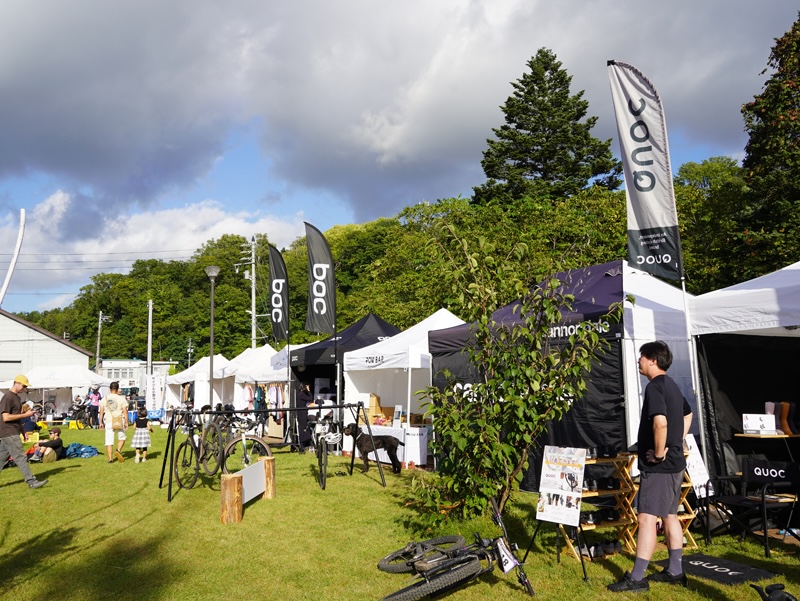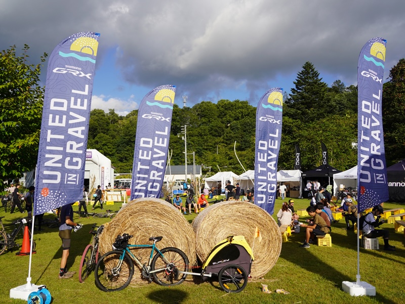 昨年は春秋の2部開催だったが、2025年は秋に一本化された。主催者は一般社団法人HOKKAIDO EVENTS、タイトルスポンサーにはカルチャーの牽引役であるパナレーサーが就任。キャノンデール(インターテック)やシマノといったお馴染みの面々も協賛各社に加わる。会場はニセコ駅前の「中央倉庫群」に開かれ、豪華なスポンサーブースとフードトラックが会場を彩る。会場の中心には巨大な牧草ロールが設置され、北海道に来た実感が湧く演出であった。