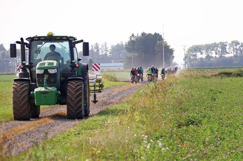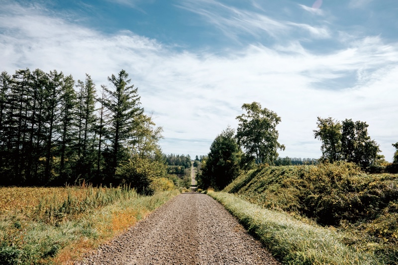 じゃがいもに大豆に麦に、牛馬羊……見渡す限り農園の平原だ。その中を真っすぐ延びるあぜ道に、巨大なトラクターが進んで行く。あれ、ここは本当に日本? 思わずそうつぶやく景色の中を、僕たちは自転車で駆け抜けている。レーシーなグラベルタイヤにピッタリの引き締まった砂利道がはるか先の丘まで続き、それはまるで北米のグラベルレース「アンバウンド」を思わせ、そこから名を取ったという「アンパント」というイベント愛称にも思わずうなずいてしまう。でもこの景色って、僕らが北海道をイメージする時に思い浮かべる、雄大さそのものなのだ。