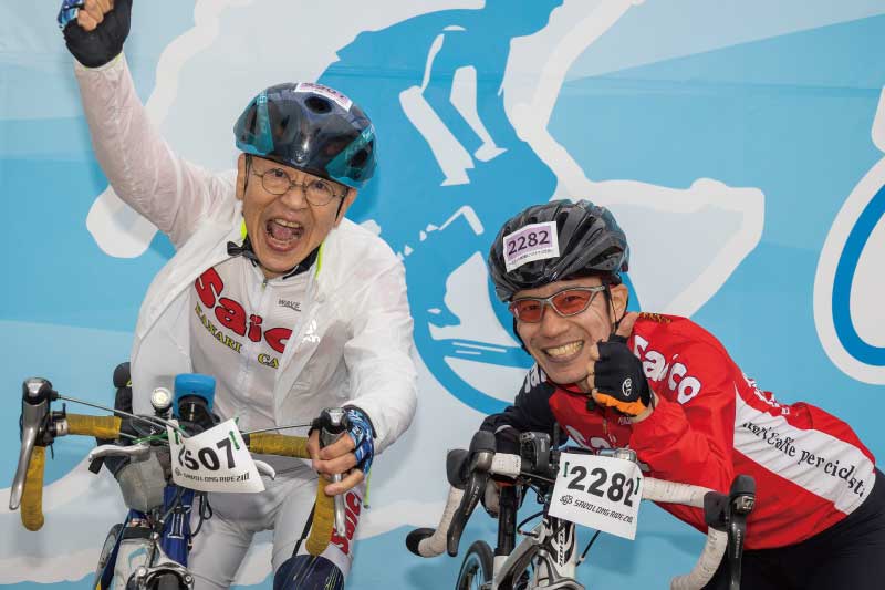 病み上がりでの参加だったことに加え、この日は風がとにかく強く、「一昨年も風が強かったけど、今日に比べればまだマシだった」とご主人。それでも完走後は「天気も何とか持ってくれて、いい思い出になりそうです」と笑顔で話してくれた。現在、旦那様62歳、奥様60歳。「75歳まで何とか210kmを走りたい。女性最高齢で頑張れたら」と力強い言葉を残してくれた。