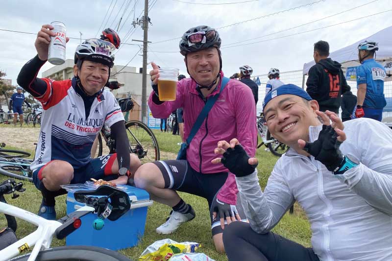 「Z坂も堪能しましたし、沿道の皆さんのおもてなしが本当に良かったです。エイドの食事もうれしかったし……人生でこんなに”ありがとう”を言ったのは初めてでした!」と語るのは、埼玉県から参加のお二人。ロングライド経験はあるものの、今回が210km初挑戦で「最長距離で足にはきましたけど、満足度は本当に高かった」と笑顔で語ってくれた。
