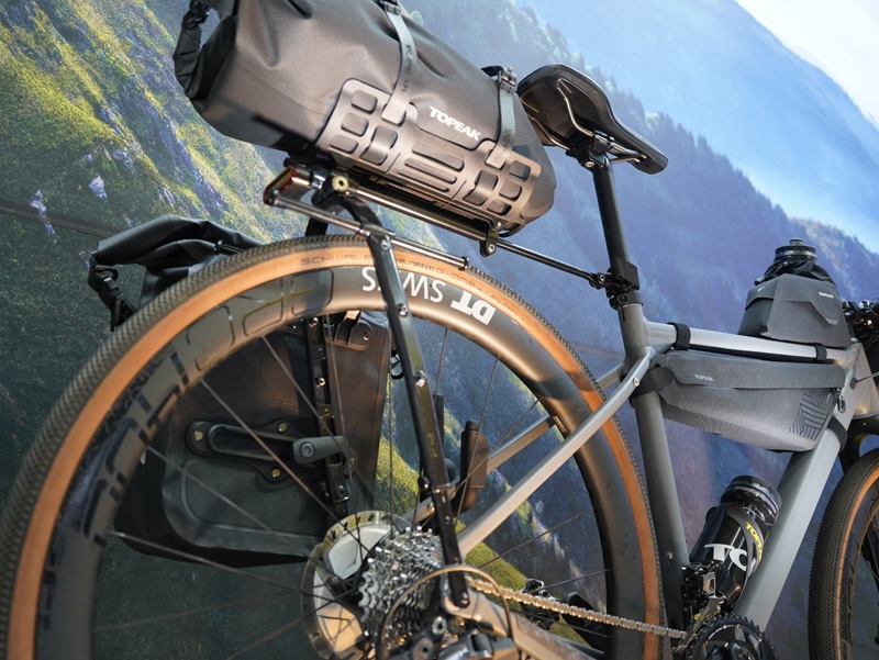日本でも長年愛される総合アクセサリーメーカー「Topeak(トピーク)」からは軽量パニアラックが登場。「ジーラック」は細身のフレームワークながら十分な強度を確保し、ダボ穴にねじ止め、スルーアクスルに共締め、バンド固定と互換性にも優れる。スリムなアダプターでハンドル周りを整理しやすいフロントラックと、コンパクトな電動ポンプも注目。