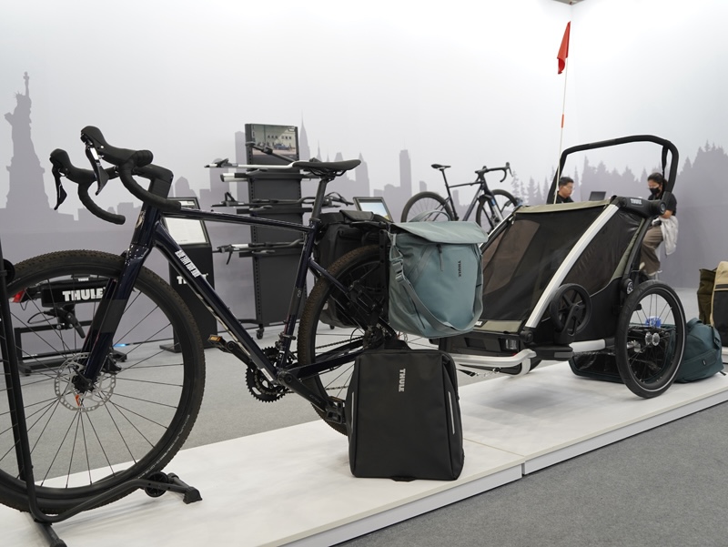ルーフキャリヤでおなじみのグローバルブランド「Thule(スーリー)」のブースではスタイリッシュなキッズ用トレーラーを発見。後輪ハブにアダプターをかませて片持ちステーを装着、牽引が行える。ステーを外せば3輪のキッズカートとしても転用可能だ。チャイルドシート無しに、普段乗りの愛車が送迎バイクに変わる便利なアイテムだ。