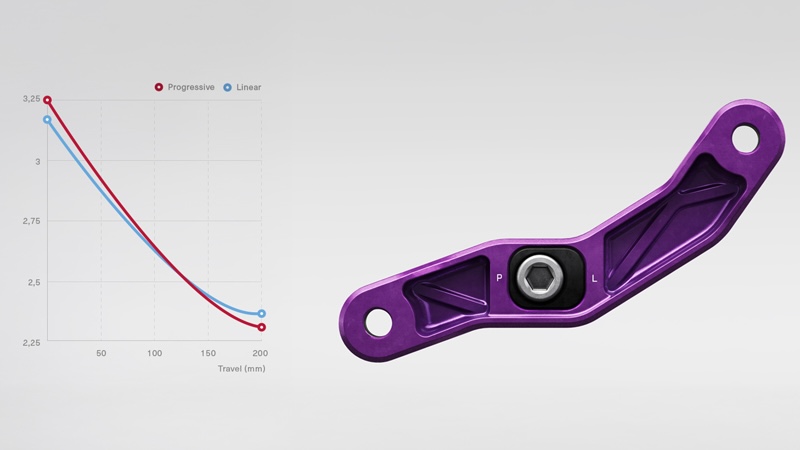 漸進的かつ直線的なレバレッジカーブにより、小さな衝撃には高い感度で、中間域ではしっかりとサポートを提供、大きな着地に対しても底付きしにくい構造となっている。ライダーは、走行するトラックに応じて、25%または30%のプログレッシビティ(サスペンションの漸進度)を選択して調整することができる。
