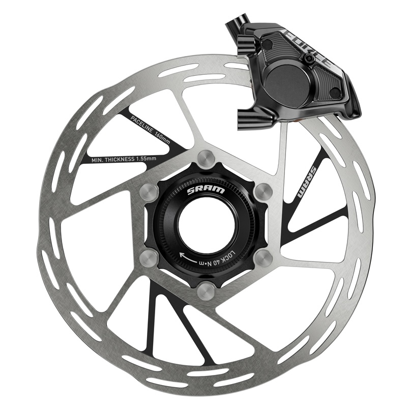ペースラインディスクブレーキローターは、スラムAXSロードグループセットのデザインを踏襲し、滑らかで静かな制動を実現するブレーキトラックのベント設計を採用。アルミキャリヤの採用により、前世代と比べて20g軽量化されている。
