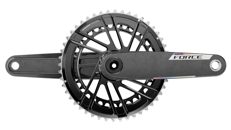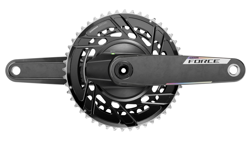 フロント1×用のフォース1AXSパワーメーターは、スラムが開発したフォースの一体型パワーメーターの中で最軽量かつ最高剛性だという。計測精度は±1.5%で温度変化の影響を受けず、ダイレクトマウント式Xシンクチェーンリングは空力性能に優れ、耐久性も向上している。