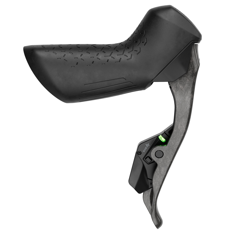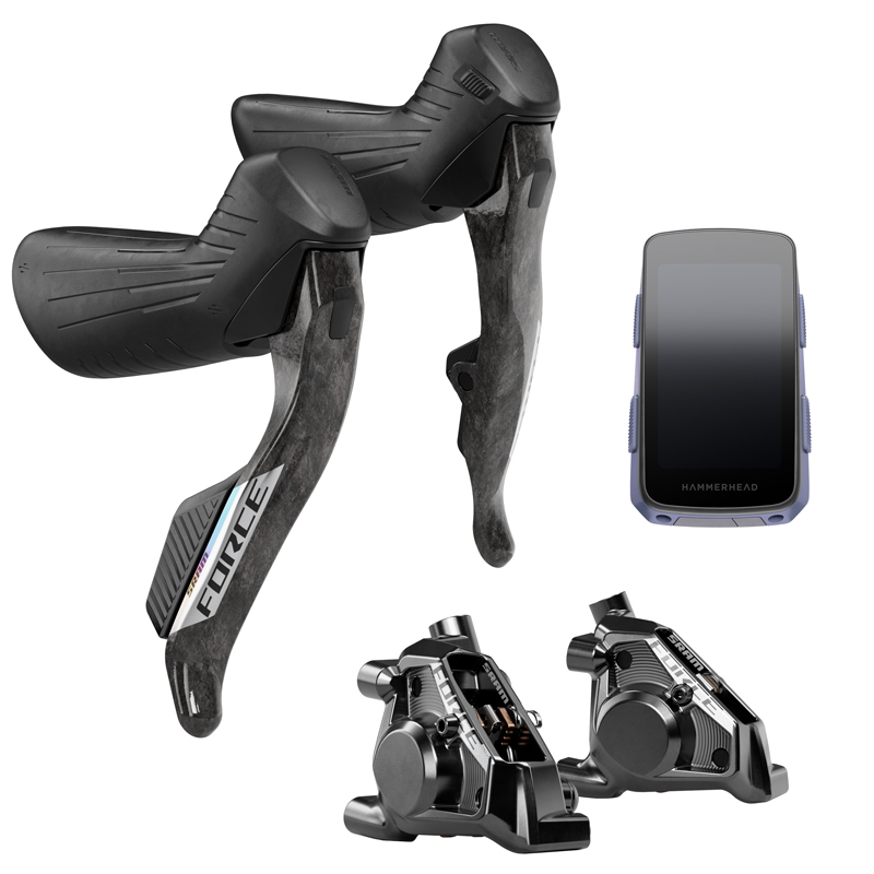 フォースにも新しいブラケットフード形状が登場した。システムには、剛性を高めたキャリパーや、ブラケット、ドロップ双方から可能なワンフィンガーブレーキング、ボーナスボタン、そしてボタンやレバー類を指先で確実に捉えられるテクスチャ加工が備わる。ボーナスボタンはハンマーヘッドのサイクルコンピュータ「カルー」のボタン形状や質感に合わせて設計。ブラケットフードはレッドと互換性がある。4年以上にわたるライダーからのフィードバックを基に改良が施され、より幅広い手の大きさにフィットし、強い制動時に指を挟む心配も排除。わずかな力で、疲労を抑えつつ、より心地よく強力なブレーキングができる。また、ブレーキレバーの素材には新たにカーボンが採用された。