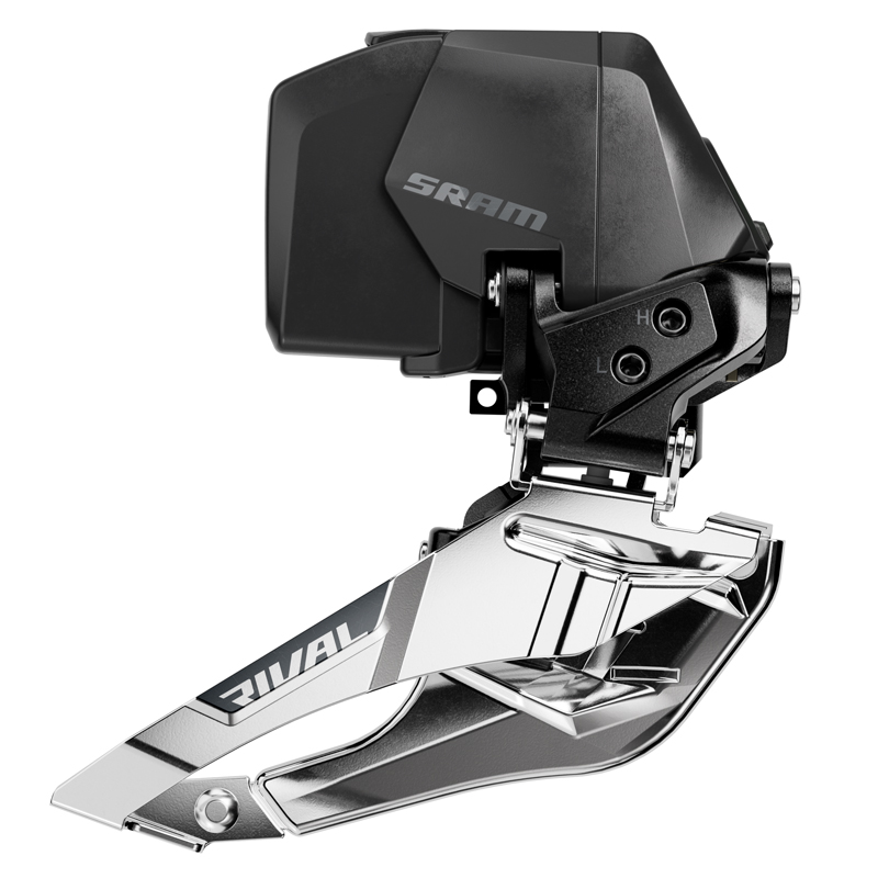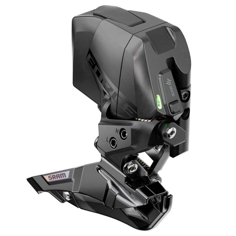 ライバルAXSフロントディレイラーは、スラムのヨーケージ動作とオートトリムを採用し、無音で擦れのない走行を実現する。さらに、Xレンジチェーンリング設計と一体化した狭幅ケージ形状により、素早くクリーンな変速が可能。付属のセットアップツールを使えば、煩わしさがなく理想的な位置決めも行える。