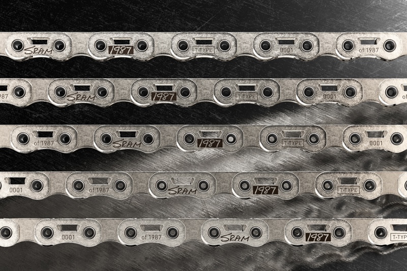 ベースはXXチェーンだが、モデル表記が完全に排除された。代わりに化学的かつ機械的にポリッシュ加工され、に輝きのある仕上がりになっている。チェーンに表示されるのは「SRAM 1987」のみ。チェーンリングを交換する際のために、追加のパワーロックチェーンコネクターも同梱。さらに、メンテナンス時にチェーンを外す必要がある場合にも使えるよう、予備のパワーロックがもう1個入っている。