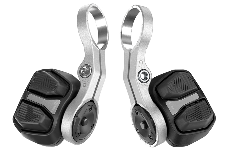 1987コレクションには、2つのAXSポッドアルティメットコントローラーが付属する。クランプ部分にダブルアノダイズ仕上げが施されており、上面には「SRAM」の刻印が入っているのみだ。左右どちらの手でも操作でき、「リバーブAXS」「フライトアテンダント」といったドロッパーシートポスト、サスペンションなどとの連携も可能。
