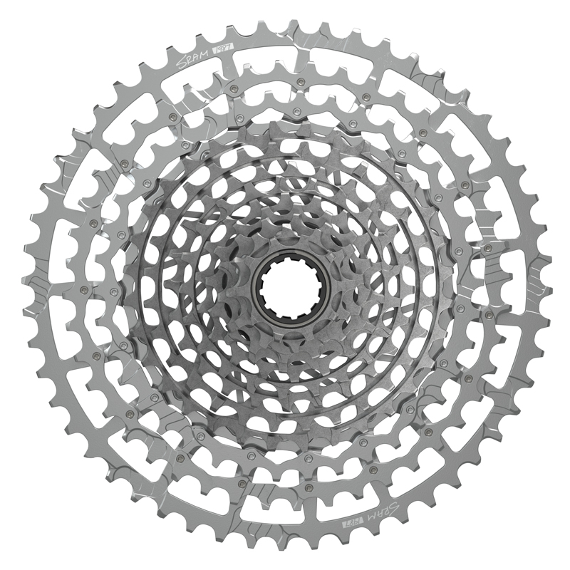 1987コレクションのカセットはXXSLをベースにしているが、裏側を追加加工することで約25g軽量化された。この軽量化によって、カセットはシルバーの生地仕上げのような外観になり、素材や技術そのものが語るようなルックスになっている。切削後にはダブルアノダイズ処理(二重陽極酸化)」が施され、このような銀色の光沢を実現している。製品に見えるロゴは「SRAM 1987」のみだ。
