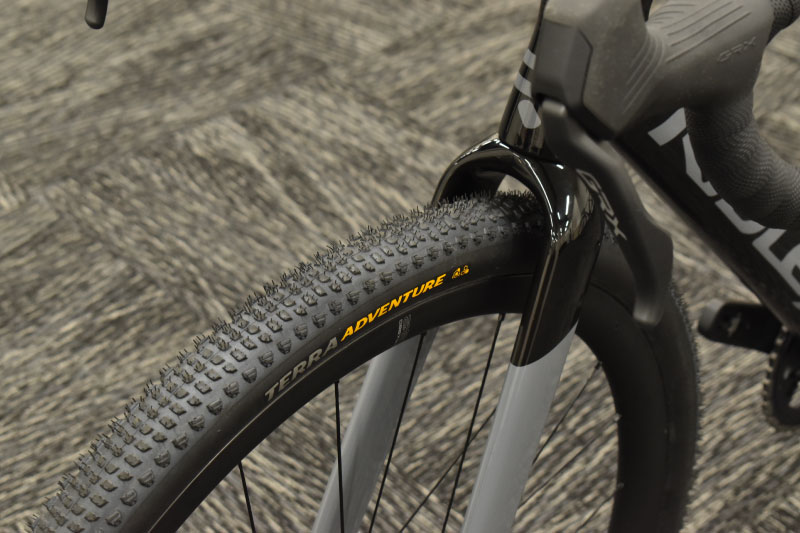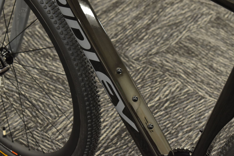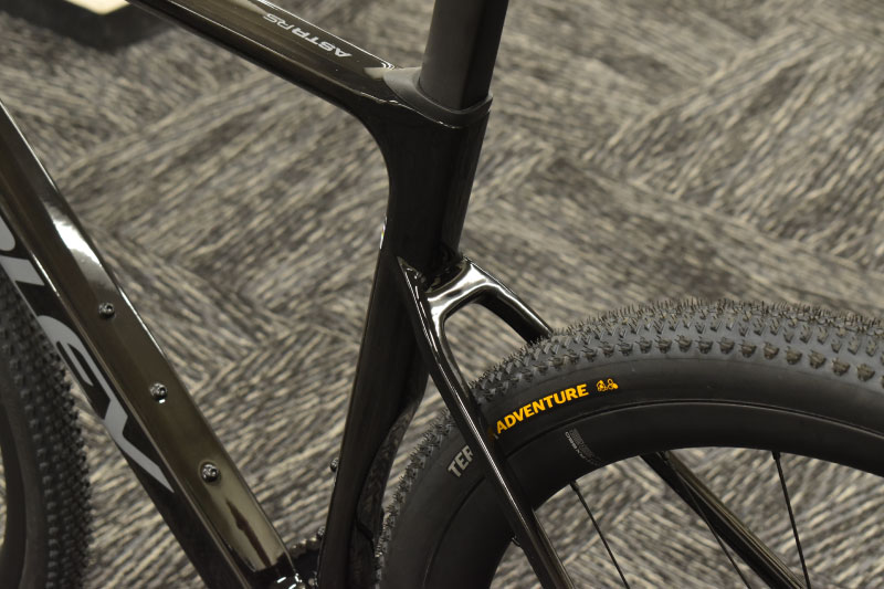 フレーム重量で862g(Sサイズ)と軽量に仕上げ、登坂性能を向上。同時に最大52mm幅のタイヤまで対応できるクリアランスを設け、エアボリュームの大きいワイドタイヤを採用し、転がり抵抗を抑えつつも快適性とグリップを生み出している。