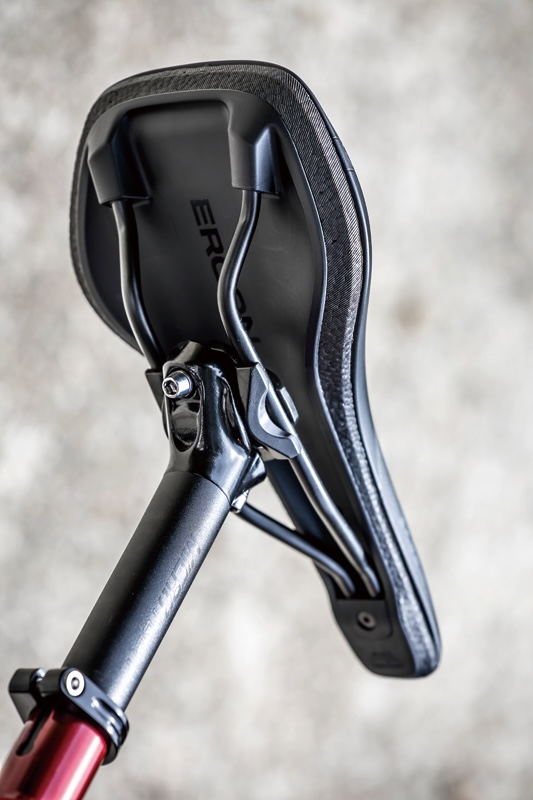 このサドルは、上りで上半身を前傾させたときや、下りで腰を引いたときなど、スイートスポットが広いことに感心する。加えて、レリーフチャネルのお陰で会陰部のしびれはなく、座骨の痛みもほぼ皆無と言っていい。