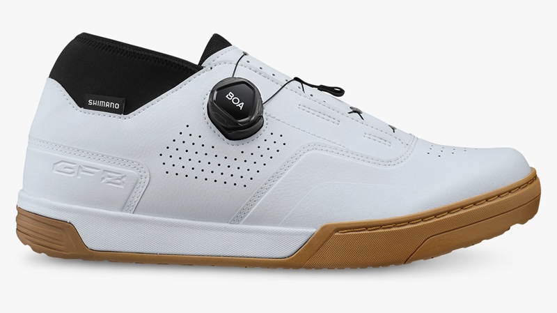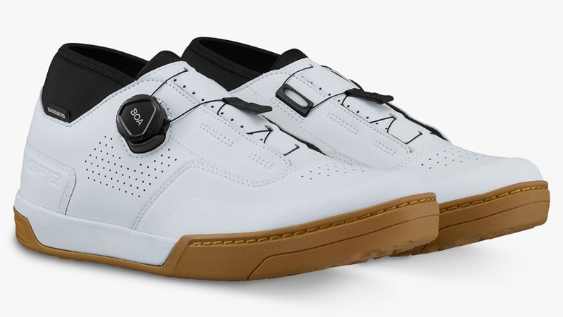 シマノから、フラットペダル用MTBシューズ「GF800」が登場した。ダウンヒルを極めたいライダーのために開発され、バイクとの一体感をもたらす。また、同じくグラビティシューズの「GF400」には新色が追加された。