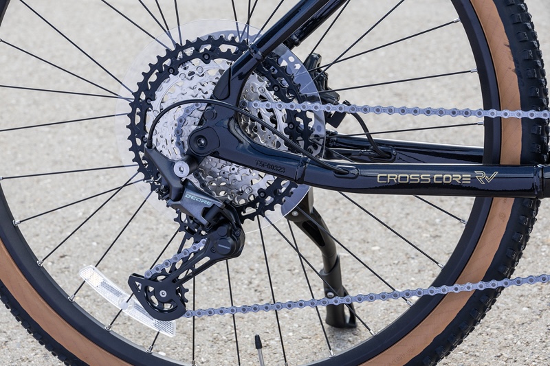 ドライブトレインはシマノ製のDEORE(デオーレ)リヤディレーラーを使う12速。ギア設定は10-51Tとワイドなので、舗装平坦路での巡航も容易なうえ、急な上り坂にも対応する。