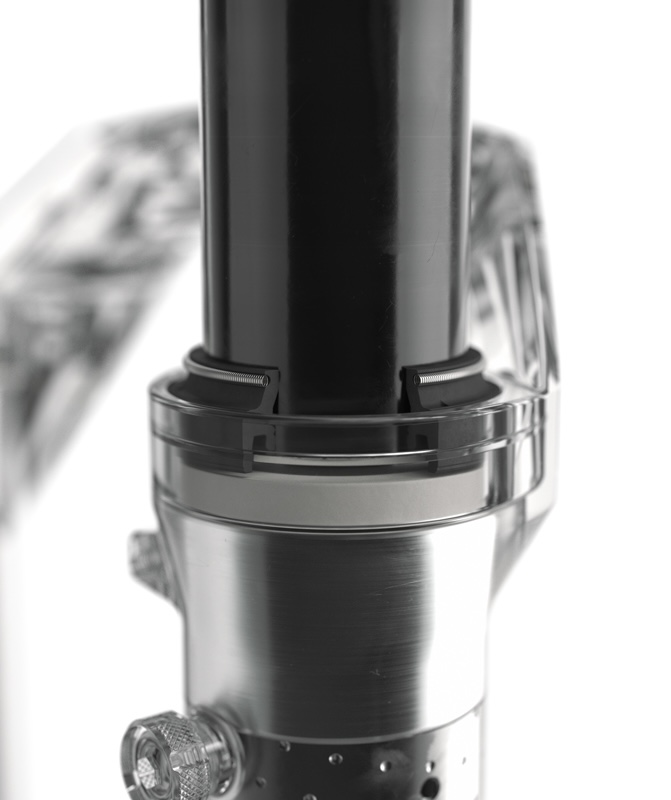 ボクサーのロワーレッグに備わるエアーアネックスは、ロワーレッグ内のエアボリュームを増加させる。これにより、従来のロワーレッグ設計に内在していたエアスプリングの過度なプログレッシブ特性やスピード依存性を低減。これまで制御不能だった、スピードに依存した進行特性を、レーサーのためのリニアで予測可能な特性へと変換する