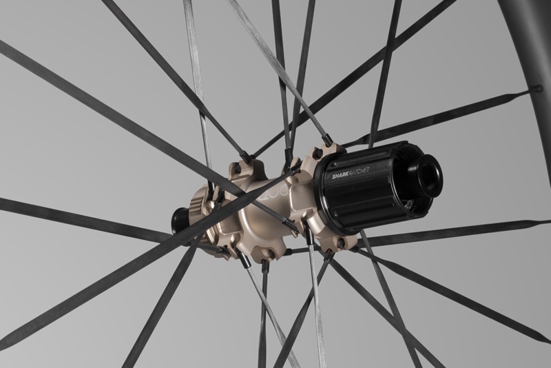 さらにオークォは、このカーボンスポークシステムに対応する専用ハブ「Q10 CS」を新開発した。スポークとハブボディ、ニップルの位置関係を最適化することで、最大スプリント時でも安定したテンションを維持する。