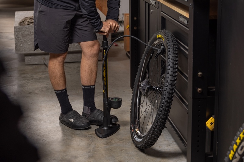 LEDデジタルゲージのほか、高流量の空気充填が可能な仏式バルブ専用のターボヘッドを採用したフロアポンプ。最大60psiまで測定できる。