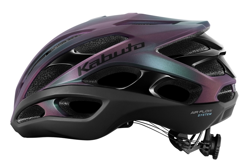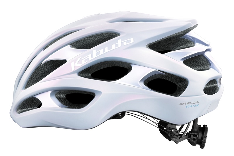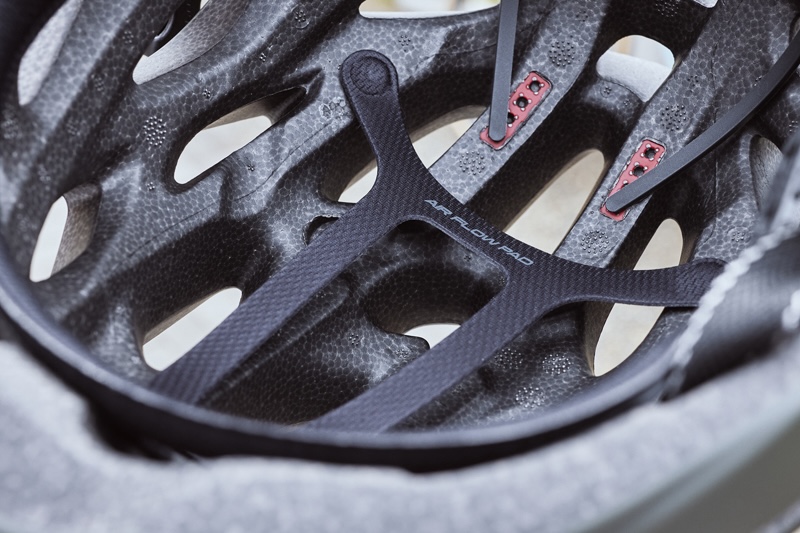 頭部からヘルメットを浮かせるフローティング構造と「エアロフローパッド」を導入し、風が通り抜けるような涼しさを実現。シェルの内側に巧みに配置されたエアルートと走行姿勢を解析して設計されたシェル形状が、効率的なクーリングをサポートする。