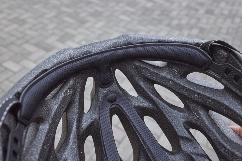 通気性においても「エアロフローパッド」が真価を発揮する。時速30km台半ばに差し掛かると、ヘルメット内部の空気が頭頂部を撫でるように流れる感覚がある。真夏の酷暑でどう作用するかは未知数だが、熱気が滞留しにくい構造であることは間違いないし、頼りになりそうである。またこめかみ付近にも風の流れを感じやすく涼しさがアップする。やはりフラッグシップモデルであるフレックス・エアー譲りの実力は本物だ。
