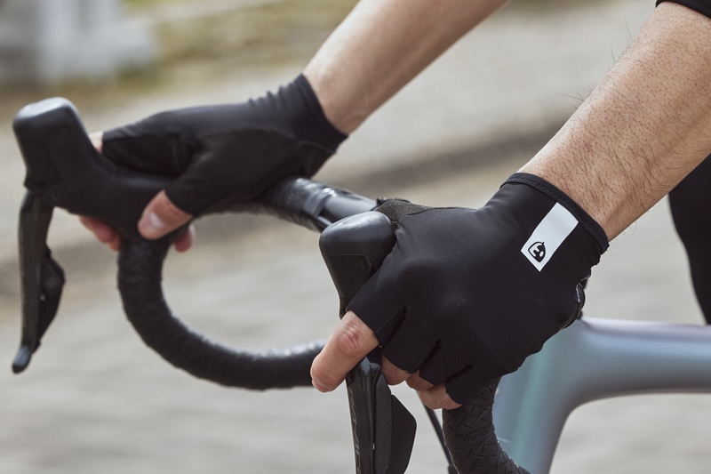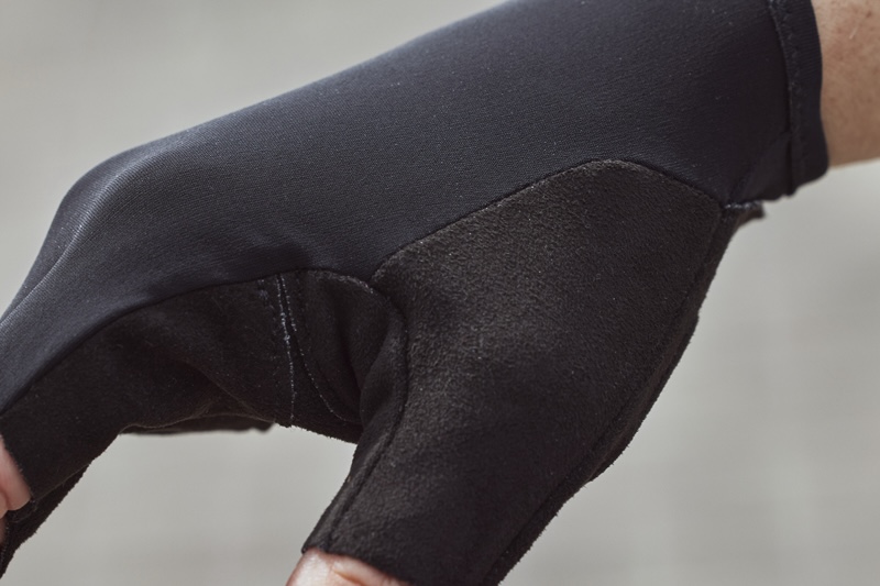 エチェオンドの指切りグローブの定番。ベルクロレス設計とライクラ生地、程良い厚みを抑えた掌により、軽やかな装着感とダイレクトな操作感を両立。親指には吸水性の高いタオル地を配し、汗を拭いやすくする。