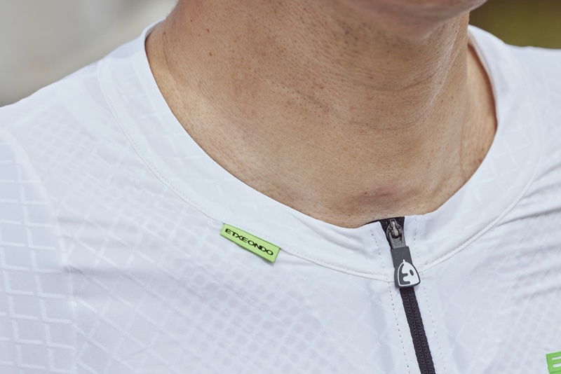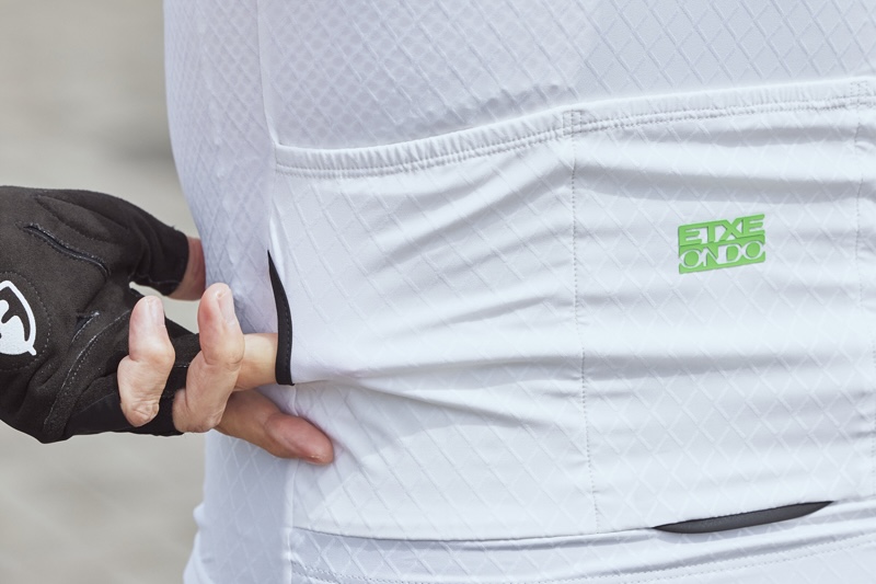 フィット感も極めて秀逸だ。空力性能を高める密着感を備えつつ、深い前傾姿勢をとっても肩周りから背中にかけての窮屈さは皆無。生地の特性を最大限に引き出す、エチェオンドの裁断技術の高さが光ります。さらに伸縮性に優れたローエッジ仕立ての袖が腕に自然と馴染み、上質で優しいエアロフィットが身体を包んでくれる。