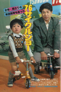 「今回取り上げますのは1976年6月号「総力特集’76サイクルショー」です。まずこの表紙の素晴らしさ。昭和の若者らしい良い絵ですねぇ。ですが心が汚れている私は、今ならヤフオクでこのくらいはいくな、などとついいやらしい値踏みをしてしまいます。申し訳ございません。」