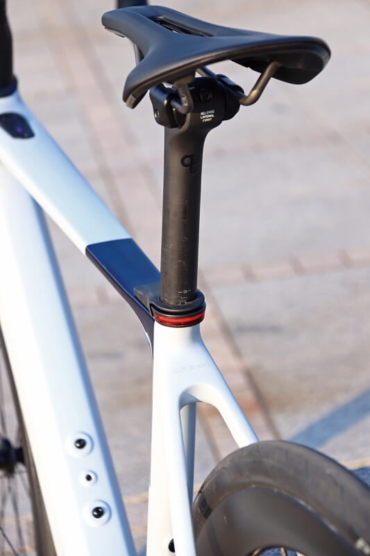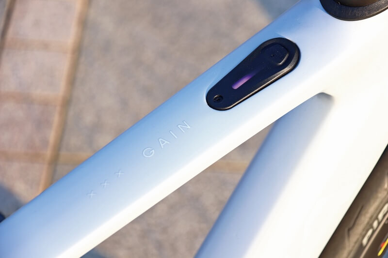 フルカーボンeロードの先駆けだったスペシャライズド・クレオSLが、新型ではグラベルeバイクになったため、国内のeロード市場はBESVやジャイアント、ヤマハなどのアルミフレームモデルが主戦場となっていた近年。そこに、アシストなしの状態でもカーボンロードバイクとして満足できる走りに仕上げてきたのがこのゲインの特徴と言えるだろう。というのも、平坦路でのロードバイクの巡航スピードはアシスト上限を上回ることが一般的で、そこでアシストが切れた状態のロードバイク的走りが実現できているかは、大事なポイントとなるからだ。