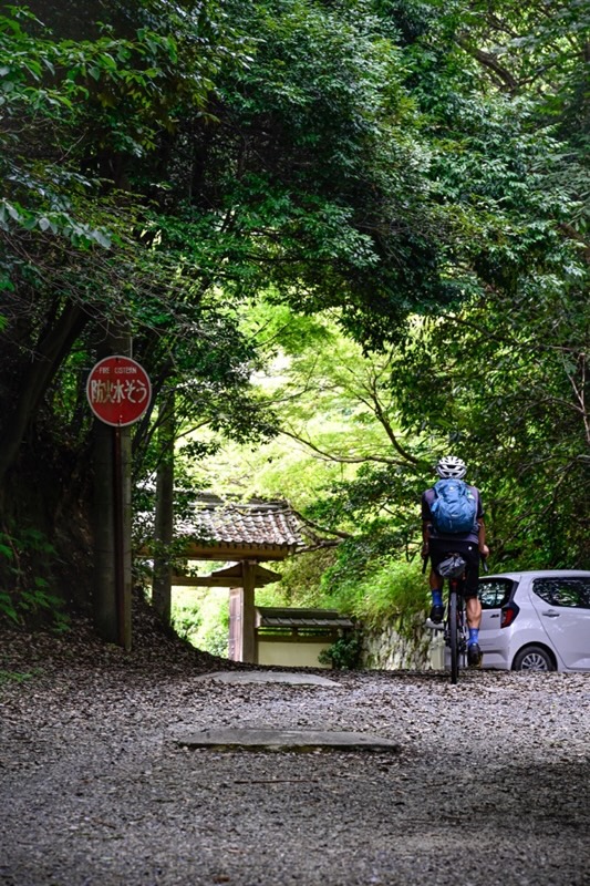しばらく道の変化を楽しみながら走っていたが、やがて二人とも口数が減ってきた。とにかく、暑い。外気温36℃、山裾ゆえに風がほとんど通らない。しかも山の辺の道は細かいアップダウンの連続で、距離のわりに脚への負担が大きい。