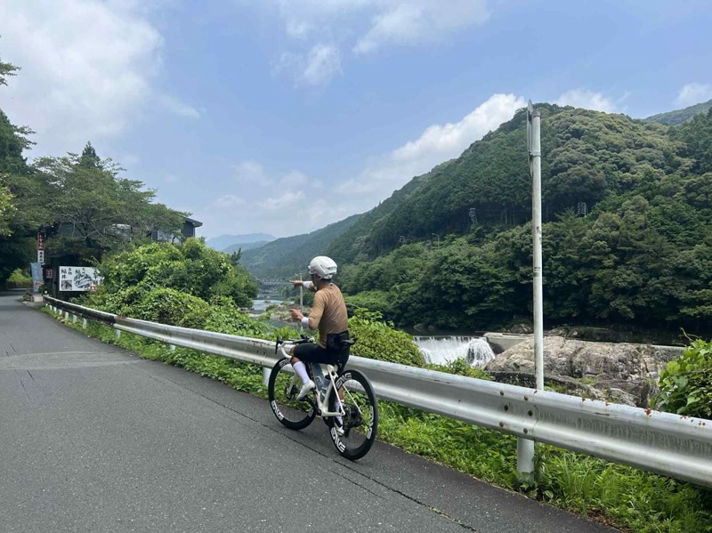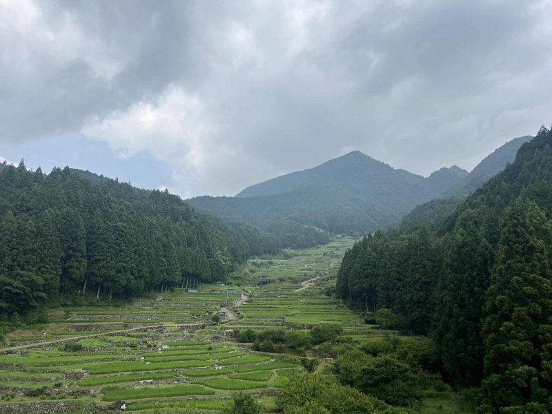 「早く着け」と心の中で思いながら、ペダルを漕ぐと突然目の前に「どん」と千枚田が広がる。肩で息をしながら、その雄大な風景を眺めた。この山々から流れ出た水が、川によって下流に届き人々の生活を潤し、発展させていること思った。そしてその川の流れに沿って自らの脚でたどり着くことで、そうしたことをより実感しながら、暑さに苦しめられた一日目が終了した。