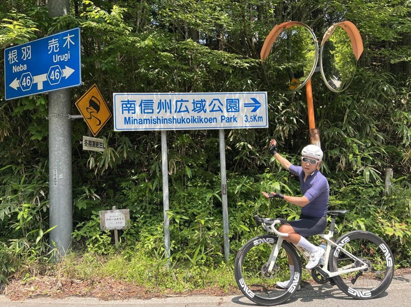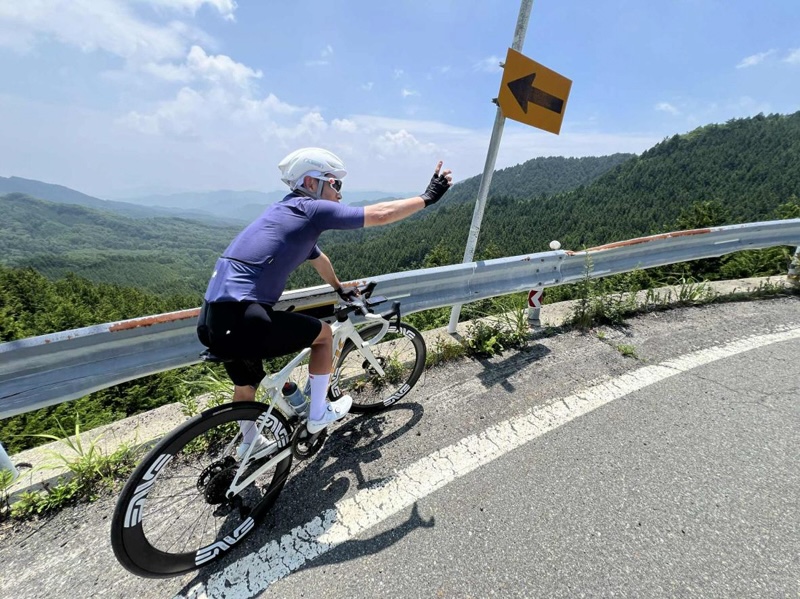 いったん売木村まで下ると、また上りがスタートする。長野県売木村から平谷村へ向かう平谷峠を日本三大酷道の一本とも言われる国道418号で進む。決して⾛りにくい区間ではないが、なかなかな斜度の坂が続き、ハイライトの九十九折りをいくつか越えた先にある「やまなみ広場」周辺ではまさにみごとな奥三河周辺のやまなみを見ることができた。「うん、悪くない」これでこそ自分の脚でここまで来たかいがあるというものだ。