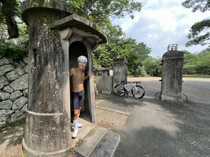 ルートは細かく緩やかなアップダウンを繰り返しながら国道259号沿いに田原市街を抜け、豊橋市を目指す。農業地帯を抜けると工業地帯へと風景が変化していく。豊田自動車・田原工場や新日本製鉄などの工場もある臨海工業地帯で、平日の主要道は信号に加え交通量も多く、速度が上がらない。加えて頭上ではじりじりと太陽がしっかりと無言で仕事をしているため、日陰のなさ、逃げ場のない暑さが容赦なく僕を痛めつける。しかし半島を抜け山間地へたどり着くためには産業や、都市機能が集まった平野部を抜ける他はない。豊橋市内へ入ると風景が市街地らしい景色へと移り変わり始める。豊橋市は国内に19ある路面電車のひとつが⾛っており、路面電車が見え始めると今日の中継地点と定めた豊橋公園はもうすぐそこだ。