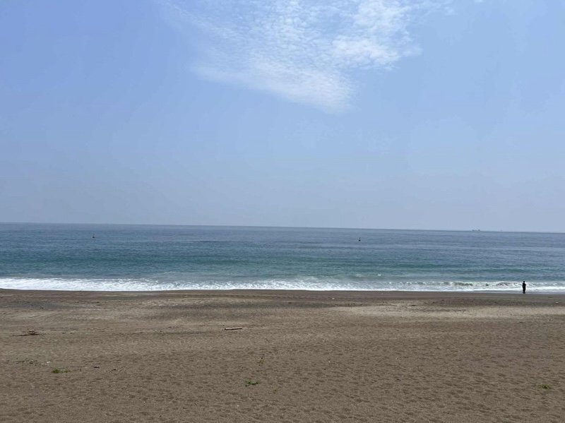「あぁ、太平洋だ」。伊良湖岬を出発して四日、ついに太平洋を眼下に見る位置まで自分の脚で戻ってきた。このときばかりは、暑さも忘れ、眼の前に広がる太平洋を見て、月並みで当たり前の感想だが「海だ!」と言ってしまった。いや、しかしこれは感慨深い。しばらくどこまでも続くような砂浜を眺め、大きな波の音を聞き入ってしまった。