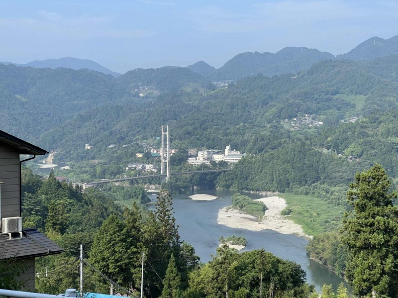 序盤はあまり眺望もなく、爽やかな朝の空気の中を淡々と進むものの、長野県泰阜(やすおか)村から長野県阿南町へ差し掛かるあたりで、急に視界が開ける。下り坂であったが、思わずストップ。長野らしい空の広さ(個人的な意見だが何故か長野は空が丸い、やけに広い気がする)、眼下に広がるモダンな橋と小さな集落。「うんうん、これだよ、これこれ」と、眼下に広がる景色に妙な納得を覚える。