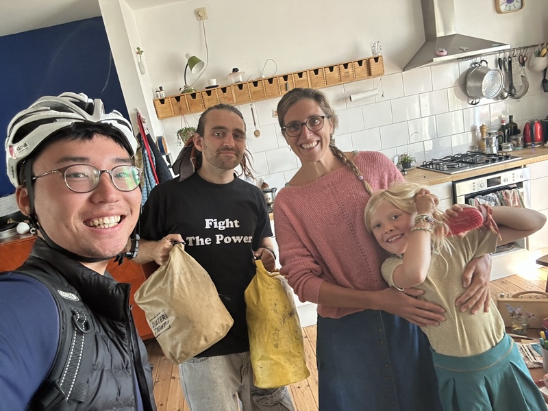 それ以外は毎日、親切な人が家に泊めてくれた。ヨーロッパはサイクリストが多く、自転車旅を応援してくれた。また、ヨーロッパに住んでいる日本人の方々に助けていただくことも多い。さらに、その人たちが知り合いを紹介してくれて連鎖的にお世話になるなんてこともある。感謝してもしきれない。