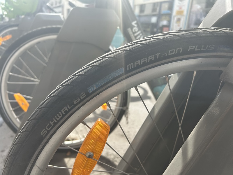 このレンタサイクルに使われていたタイヤはシュワルベ・マラソンプラス。僕が今回の旅で使用しているタイヤと同じだ。