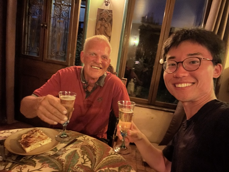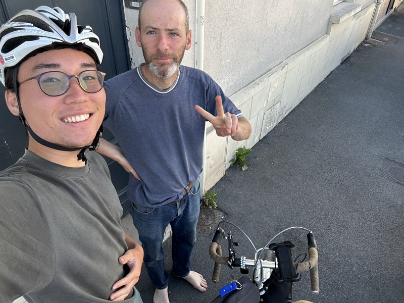 10日間パリでお世話になった。1年前日本一周自転車旅をした時に別府で知り合い、そこから親しくなった。パリの街を案内してくれたり、彼の趣味の太極拳やダンスを教えてもらった。また体調を崩した時に滞在の延長を許可してくださった