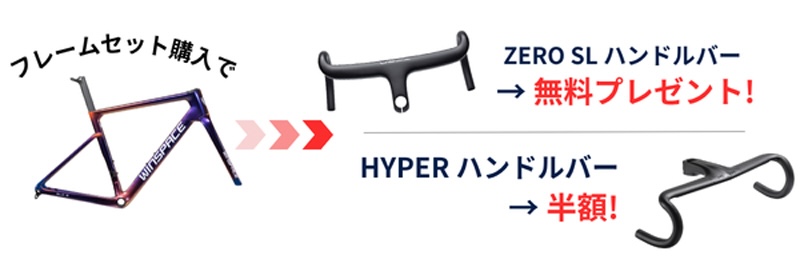 最新の軽量ロードバイク「SLC5」や、その前モデル「SLC3」、そしてエアロロードのフラッグシップ「T1600」など人気フレームセットが対象となっている。それらとハンドルバーをお得なセット価格で購入可能だ。