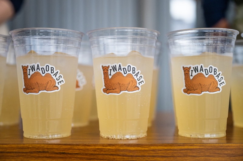 日本海に面するアウトドア複合施設「IWADO BASE」で提供いただいた、梨サイダーと梨ケーキ。炭酸で割ったジュースは爽やかで甘過ぎず、サイクリングにぴったりのドリンク