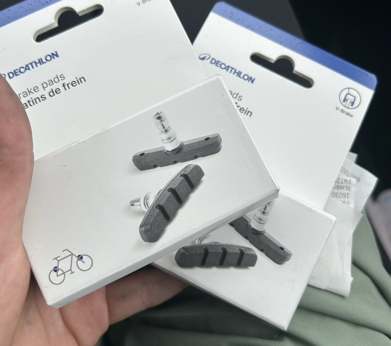 坂を下ってブレーキをかける際、毎度「キー……」と小さな音が鳴る。ブレーキパッドの状態を見るとかなりすり減ってほぼパッドがなくなっていた。以前リヨンで確認した時はまだある認識でいたので減りの早さに驚いた。