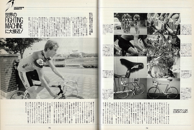 「グレッグ・レモン敗れる!」の見出しで掲載されたのは、宇都宮での世界選手権特集。本場のロードレースの興奮を綴る記事には熱量を感じる。同大会はジャパンカップへと受け継がれてゆく。自身の名を冠したレモンのバイクがページの隅に掲載されたのみで、見開きのバイク特集ページはなし。レモンのロングインタビューが掲載、まさにお宝物の一冊だ。