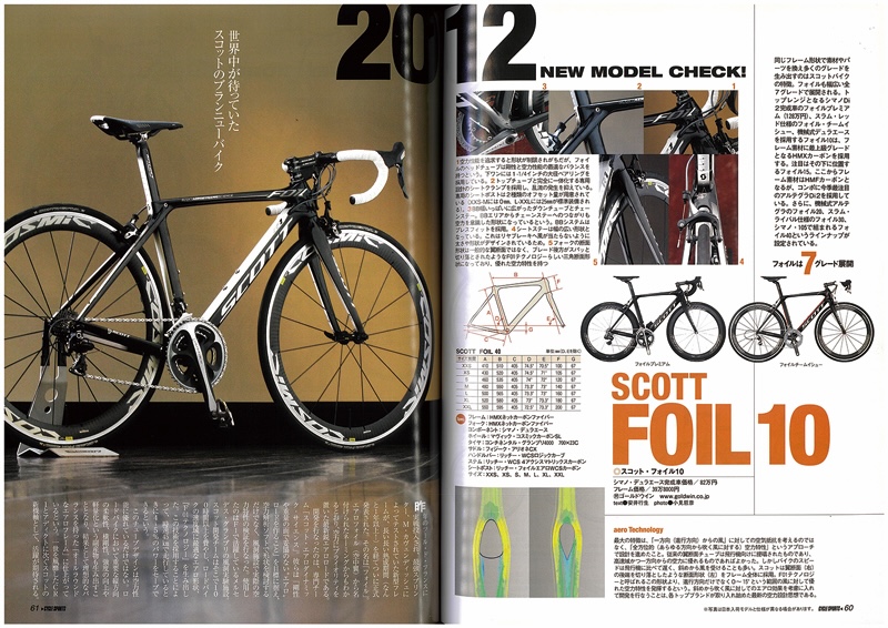 スコットの名車フォイルが登場。カムテール形状を全面に採用しエアロロードの先駆けとなった。同誌にはサーヴェロ・S5チームも掲載されたように、現代に続く空力戦争の始まりとなる年代であった。メイン特集は「自転車でカラダを変える」と題し、速く遠くにというスポーティさがモットーの構成。硬派なサイスポの一時代を印象づけた。