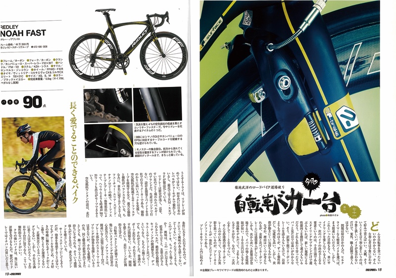 ロードバイクブームの黄金期は、毎月4~5台ものニューモデル試乗記が展開されていた時代。専用Vブレーキを搭載した意欲作リドレー・ノアファストを掲載。リムブレーキのエアロロードの成熟を印象づけた。この頃から誌面はロードバイク一色で、タイヤやホイールのインプレが厚め。先述のノアのタイヤサイズは何と21Cだった。