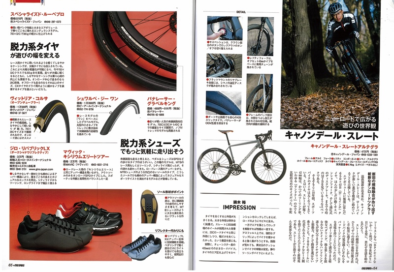 現代グラベルバイクの原型とも言えるキャノンデール・スレートが登場。レフティフォーク、ワイドなスリックタイヤというスタイルは根強いファンを獲得した。当時は“脱力系ロード”や“ニューロード”という見出しで掲載されていたのが興味深い。現代では一般的なSNSでのコミュニティ活用術も展開され……フェイスブックが主流だった。