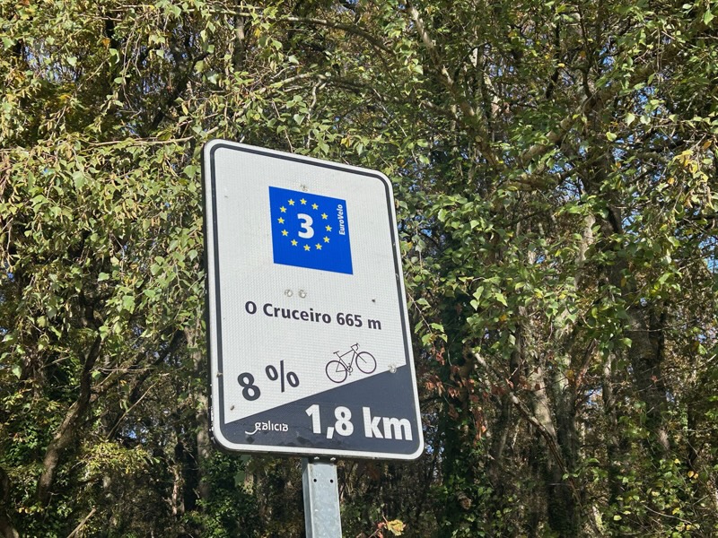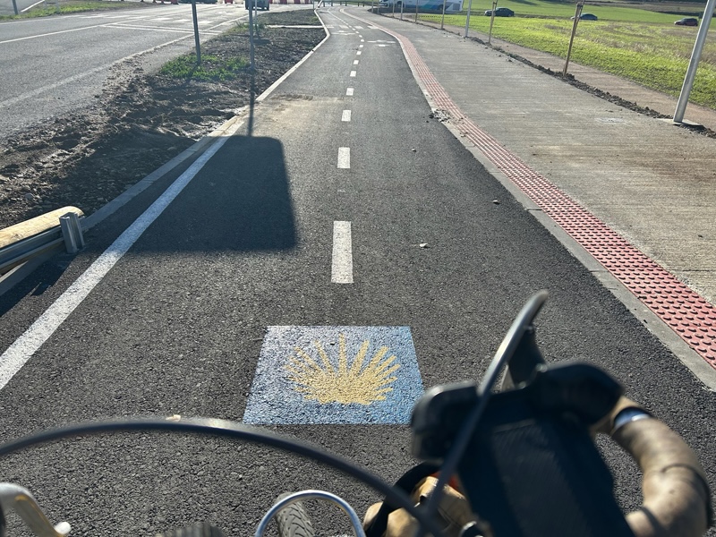 郊外のユーロヴェロの様子。自転車の巡礼者は歩行者と全く同じルートを進めるわけではないので基本的にはユーロヴェロに沿うように進んでいく。バイパスから外れた道を走るので車の交通量は少なく昼間は安全に走行することができた