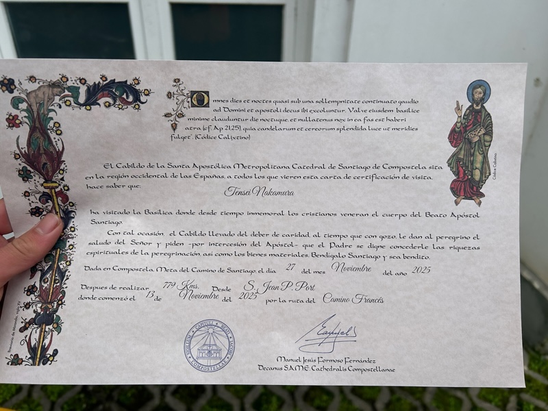 11月上旬にフランス・サンジャンピエトポールを出発して14日目、ついに巡礼の道のゴール「サンティアゴ・デ・コンポステーラ」に到着した。