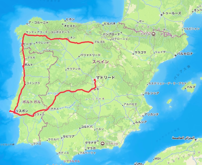 サンティアゴ・デ・コンポステーラ到達後は14か国目のポルトガルへ入国。ポルトガルの名前の由来になったとされているポルトガル第二の都市「ポルト」から、ユーラシア大陸最西端「ロカ岬」を通り、首都「リスボン」へ。その後はスペインに戻り、首都「マドリード」を目指した。