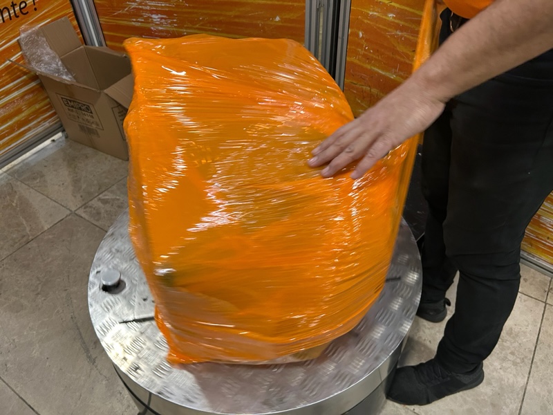 ただこの段ボール箱はペラペラでかなり柔らかく破れそうだったので、空港のラッピングショップでラッピングしてもらった(10ユーロ)。